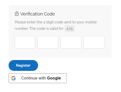 Verify with OTP :- Enter your mobile number. Submit the form. After submitting the form, check your mobile number or email for a 4-digit code (OTP). Verify that code (OTP). As soon as you enter the code (OTP), your mobile number or email will be verified. Your account will become active immediately.