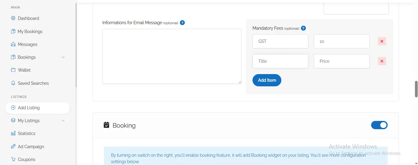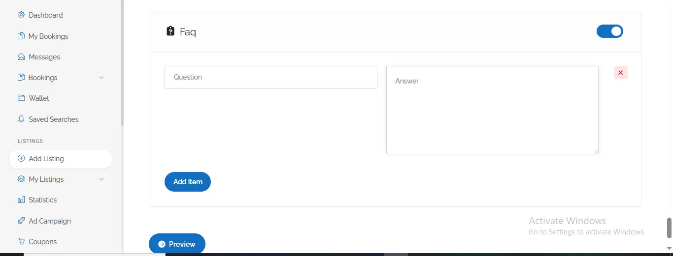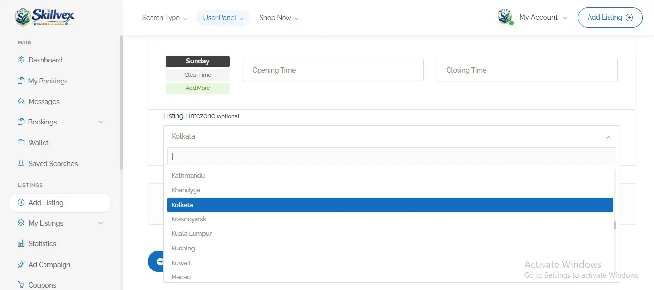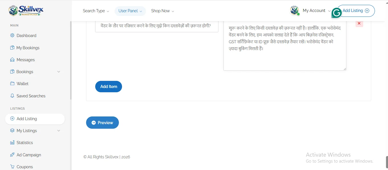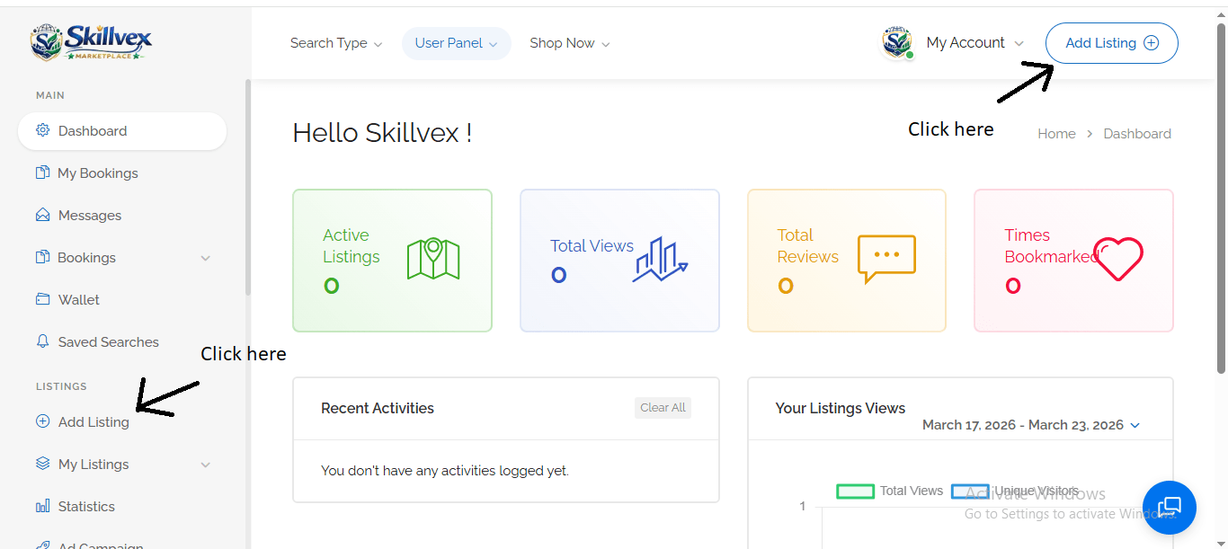 Step 1:- You will see two options on your dashboard tab to create a Business Profile: one is seventh from the top on the left side, and the second is in the top-right corner, next to the Profile icon—click “Add Listing.”
