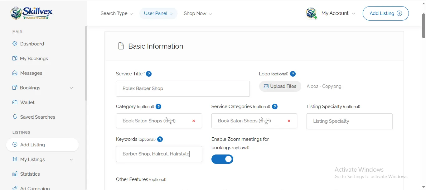 - Enter the name:- of your business or service in the ‘Service or Listing Title’ field.