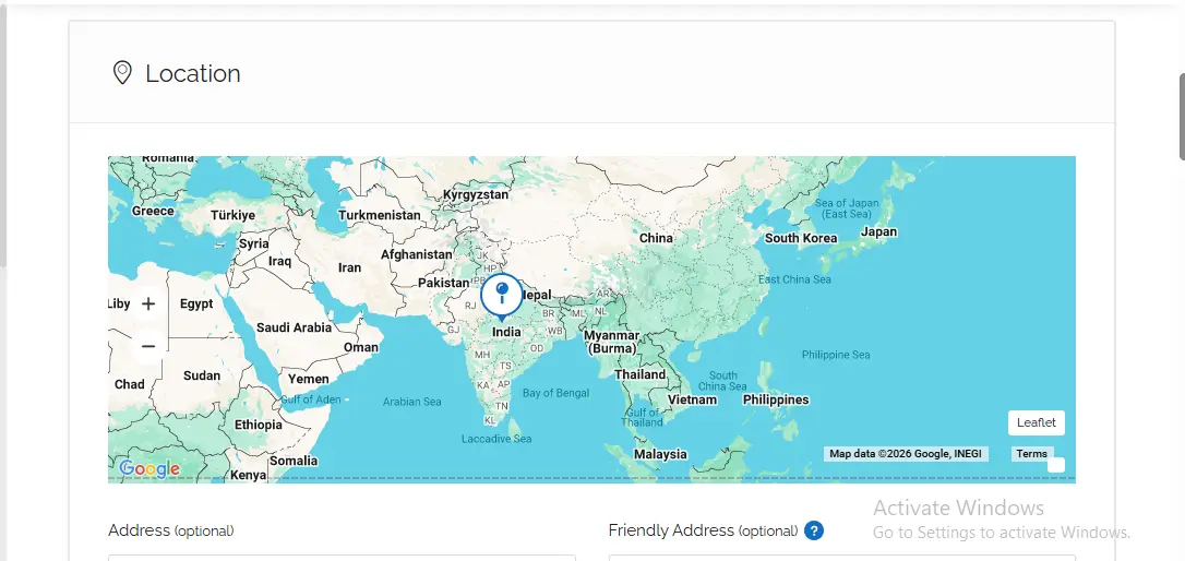Here, you specify the actual location of your business or service. Entering the correct location allows customers to find you easily, and a pin also appears on the map.