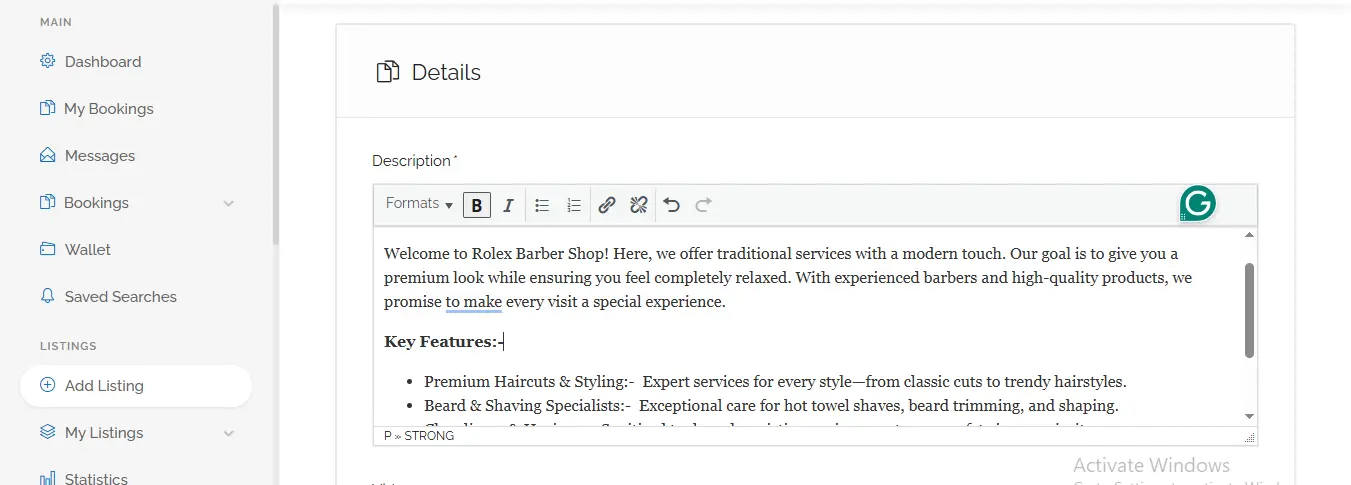 Pro Tip:- Professional photos can increase booking rates by up to 40%. Invest time in taking clear, well-lit images of your best work.
